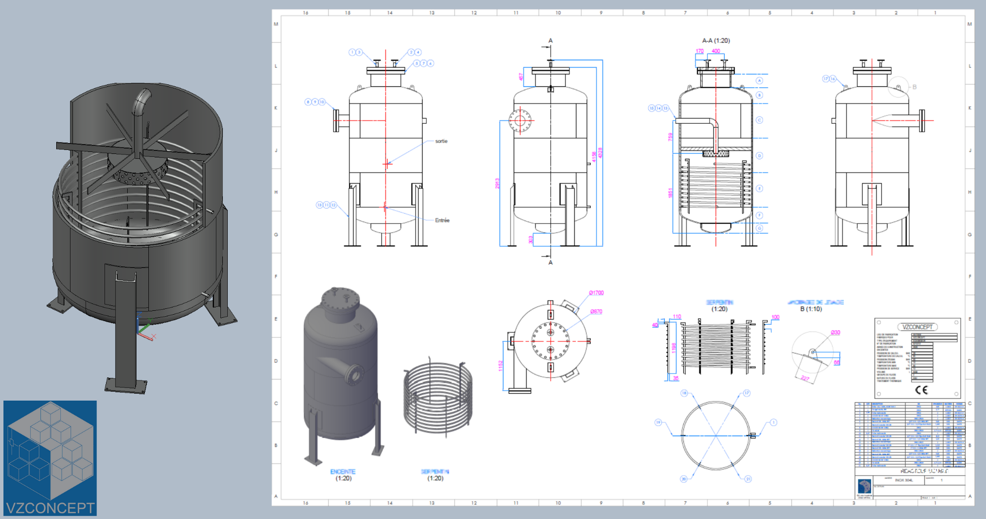 Modèle 3D de process incluant blocs paramétriques. Tous types de process ISO, alimentaire SMS, DIN, autres